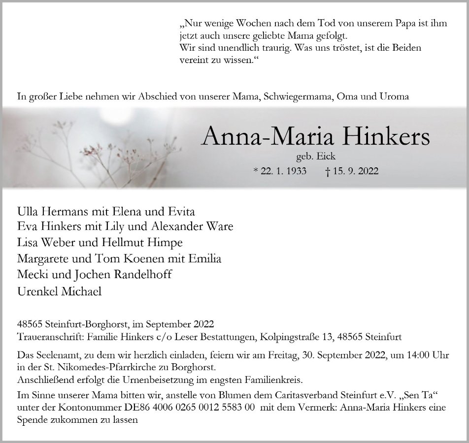in diesen Tagen fühlen wir mit Ihnen und wünschen Ihnen von Herzen, dass Sie aus den glücklichen Erinnerungen Kraft schöpfen, um positiv in die Zukunft zu gehen. Diese Gedenkseite möge Ihnen dabei helfen, Ihre Trauer zu teilen und das Andenken gemeinsam wachzuhalten.