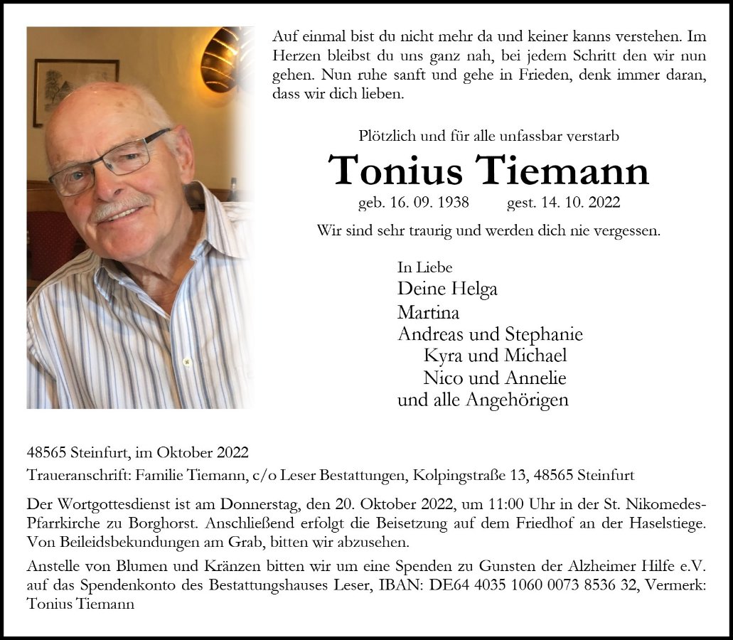 Tonius Tiemanngestorben am 14. Oktober 2022