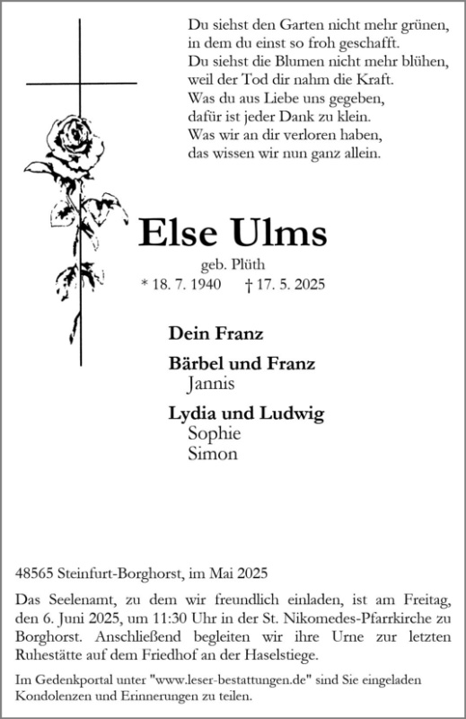 geboren am 18. Juli 1940 in Borghorst j. Steinfurt