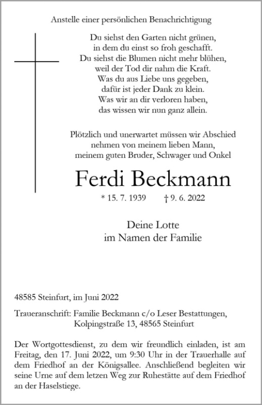 gestorben am 9. Juni 2022 in Steinfurt