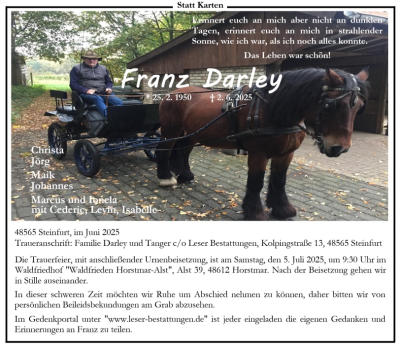 Uns bleiben unvergesslich viele Kindheitserinnerungen in St. Arnold und Amelunxen. Unser Vater war dein Pate bei der Taufe, dein Vater war mein Pate. So bleiben wir auf immer vereint. RIP