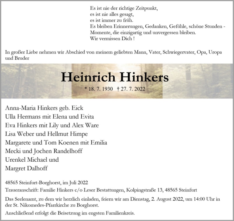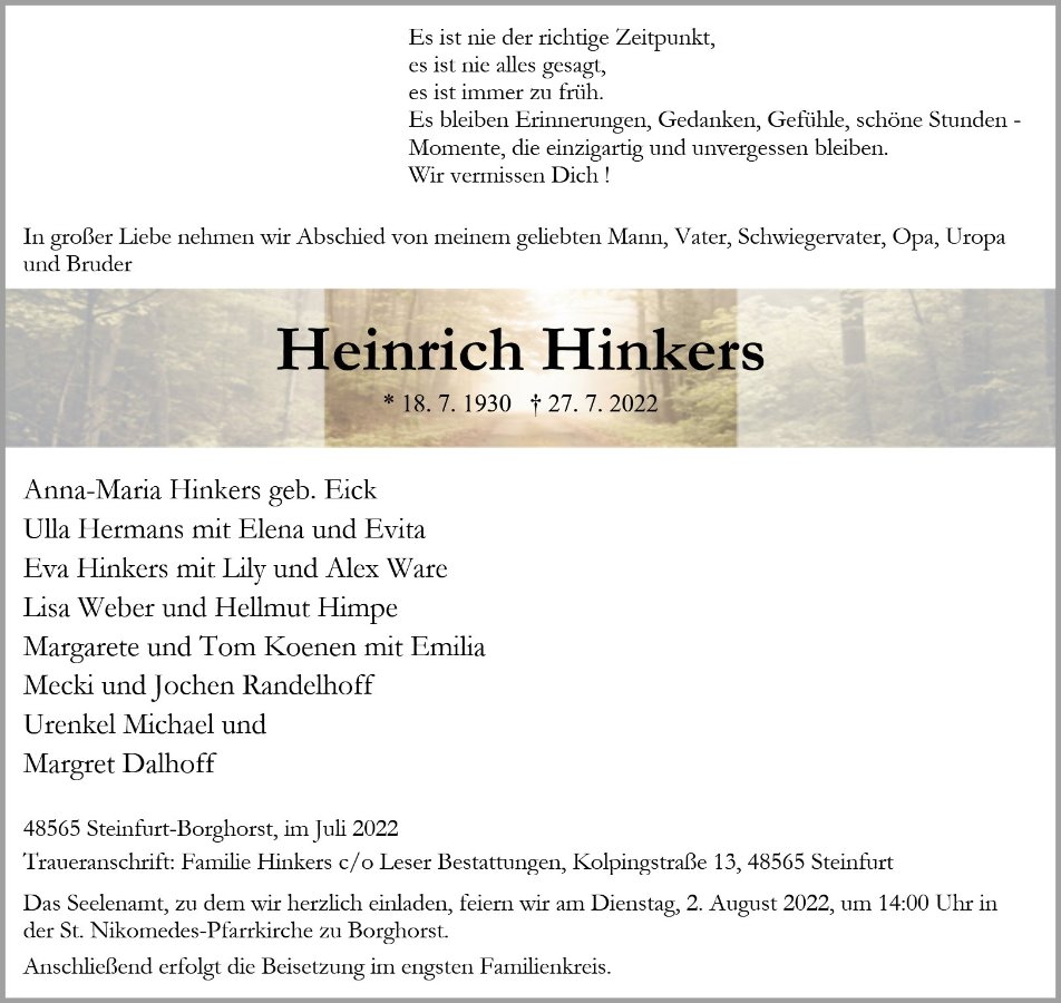 gestorben am 27. Juli 2022 in Steinfurt