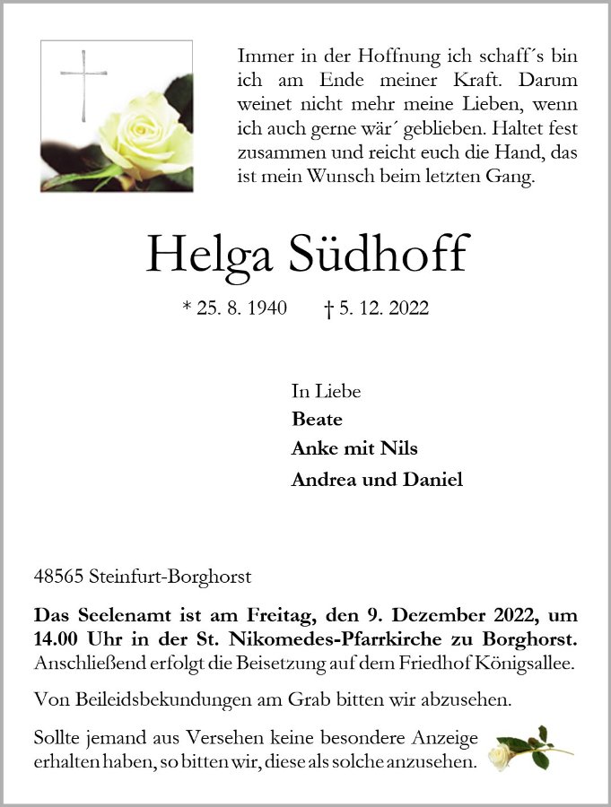 Helga Südhoffgestorben am 5. Dezember 2022