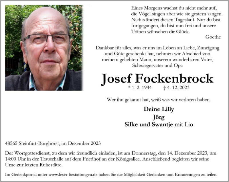 Es tut uns sehr leid, dass Ihr Euch von Josef verabschieden musstet. Wir denken an Euch und wünschen Euch viel Kraft. Josef und sein Humor werden fehlen! Es ist schön, ihn gekannt zu haben!