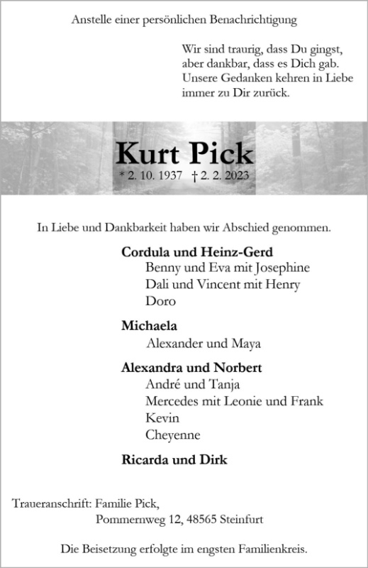 Ruhe in Frieden Kurt und Danke für die schönen Jahre