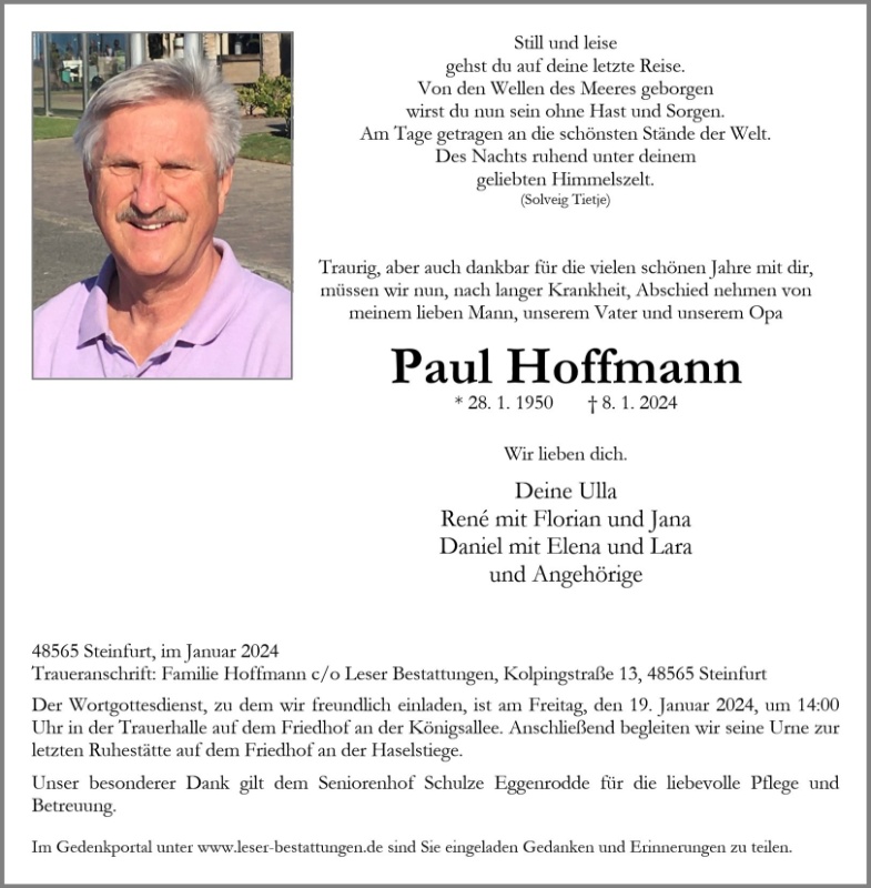 Mit Betroffenheit habe ich die Todesanzeige von Paul gelesen.